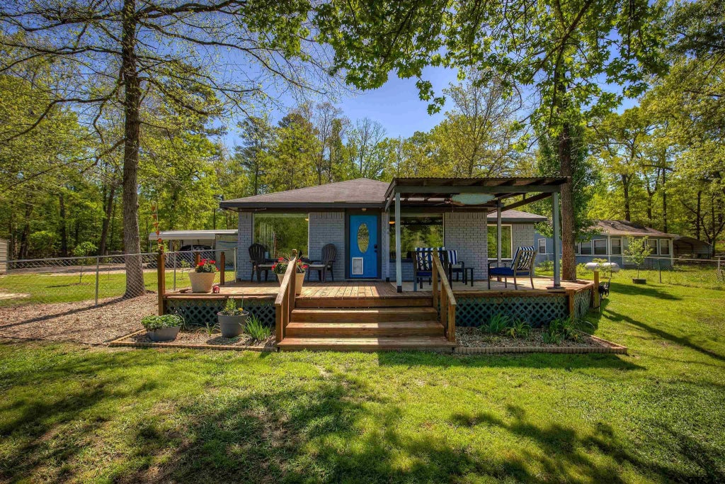 Discover your dream lakeside escape on the serene shores of Big Woods Springs Lake! This immaculate lakefront home blends comfort, style, and breathtaking views, perfect for relaxation or entertaining. Step onto the covered back deck, unwind on the peninsula’s porch swings by the fire pit, or enjoy the private dock—ideal for fishing or soaking in the tranquil lake ambiance with a refreshing drink in hand. Inside, the open floor plan showcases stunning water views, complemented by warm wood accents. The heart of the home is a chef’s delight: a spacious kitchen featuring a large island, deep double-bowl stainless steel sink, timber beams, a pantry, and elegant pendant lighting. The two bedrooms offer walk-in closets, ceiling fans, and crown molding, while the bathroom impresses with a walk-in shower, shiplap accent wall, and ample cabinetry. A versatile office space with gorgeous lake views could easily serve as a third bedroom with the addition of a closet or armoire—imagine waking up or working with the water as your backdrop! This property is move-in ready, with the boat and ramp included and all furnishings negotiable, making it an effortless retreat, primary residence, or lucrative rental opportunity. A 12x24 shed with electricity and a concrete ramp adds extra convenience. Don’t miss your chance to own this East Texas gem—a perfect blend of luxury and lakefront living. Schedule your visit today and experience this hidden paradise!
