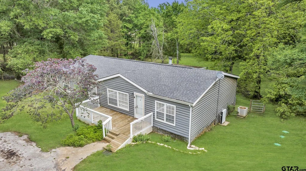 Charming and spacious 3 bedroom, 2 bath cottage-style double wide mobile home situated on 1.7 acres, just off FM 2493 between Flint and Bullard on New England Road, aka CR 149. This home offers over 1,700 sq. ft. with an open-concept layout and low-maintenance laminate flooring throughout. Features include a formal dining room and a cozy family room with a stone-front wood-burning fireplace. All three bedrooms come with walk-in closets. The large primary bathroom includes dual vessel sinks, a garden tub, and a separate shower. Enjoy outdoor living on the private 12x16 back deck that overlooks a generously sized, fenced yard. An outbuilding provides storage for your lawn equipment, tools, seasonal decor, craft supplies and more.