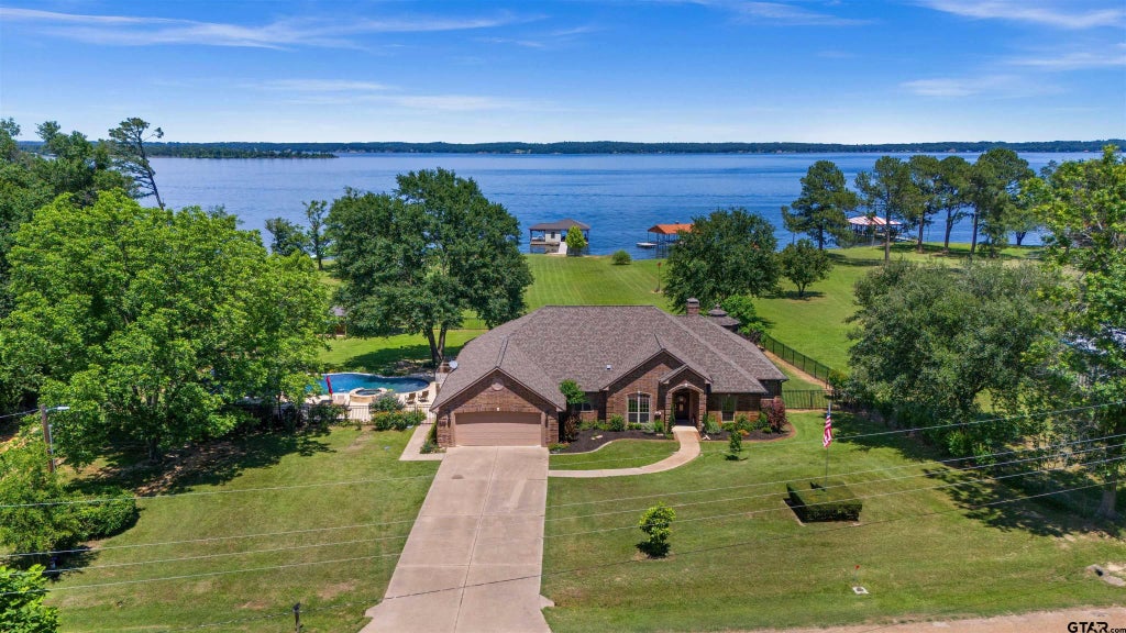 This Lake Palestine gem HAS IT ALL! Your private waterfront oasis awaits! Enjoy stunning open-water views from your own backyard paradise, complete with a brand new gunite pool and hot tub, outdoor kitchen, and expansive patio area—perfect for entertaining or relaxing in style. Swim while overlooking the peaceful lake, or take advantage of the new boathouse, which includes an electric boat lift, dual jet ski lift, and a paddle boat/kayak ramp. A spacious 14x16 open deck and 16x20 covered area provide ample space for lounging and lakeside gatherings, while a 12x12 enclosed room with bar access makes year-round entertaining a breeze. Plus, a newly installed bulkhead adds both beauty and functionality to this exceptional property. Inside, the home features a warm and welcoming stone wood-burning fireplace in the family room, a formal dining room, office, a cozy breakfast nook, and a breakfast bar for casual meals. The split bedroom floor plan offers privacy and comfort for family and guests alike. Whether you're hosting summer parties, enjoying peaceful sunsets, sunrises, boating across Lake Palestine, this home is the total package for lakefront living. Don’t miss your chance to own this incredible waterfront retreat!