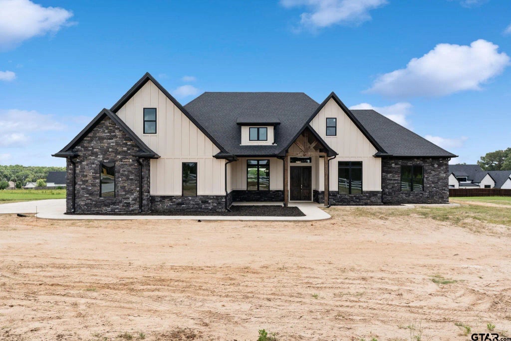 Stunning new luxury construction home located on 1.1+ acres in a peaceful country setting—just 1 mile from Lake Palestine and within Bullard ISD. This 5-bedroom, 3.5-bath home offers an open-concept floor plan with high-end finishes throughout. Enjoy a spacious living area with abundant natural light, vaulted ceilings and a luxurious floor to ceiling sugar textured tile fireplace anchored by gorgeous decorative shelving. The gourmet kitchen features leathered quartz countertops, undermount lighting, a large island with wooden vegetable drawer storage, custom cabinetry, and stainless steel appliances—perfect for entertaining. Separate dining area features a built in elegant credenza with wine rack and tons of storage. The primary suite includes a tray ceiling, natural light and a spa-like ensuite with a soaking tub, walk-in shower, dual vanities, and a large walk-in closet with access to your laundry room for added convenience. Split bedroom layout with three guest bedrooms sharing a full bath, and a private 5th bedroom/bonus room with ensuite—ideal for guests or multi-generational living upstairs. Additional features include a mudroom, large laundry room, and a 3-car deep garage with extra double door access to store lawn equipment etc….Step outside to a spacious covered patio overlooking your private acreage—ideal for relaxing or hosting gatherings. Already plumbed and ready to add an outdoor kitchen. Plenty of room to add a garden, build a shop or pool. Enjoy the best of country living with modern luxury, all just minutes from lake access. Don’t miss this incredible opportunity—schedule your showing today!