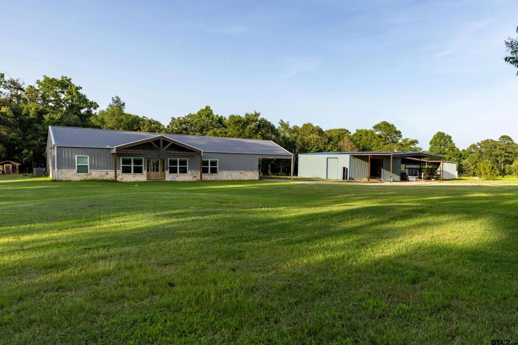 East Texas - Hopkins County complete package! Sitting on 15+ acres this 3BR-2.5BA charmer has everything you're looking for. Built in 2021, the home features spray insulation throughout, gutters, attached carport, concrete floors, granite counters, custom cabinets, walk-in pantry, SS appliances, primary bedroom split, huge walk-in closet with built-in dresser. Solar panels help minimize the electricity bill, and there's abundant storage throughout. The property also includes a 40x50 shop with living quarters, originally built in 2019 and updated in 2024. Inside you'll find a kitchenette, bedroom with walk-in closet, bathroom with large walk-in shower, air conditioning & sprayed insulation. There's ample space foe equipment such as 4-wheelers, tractor or riding mowers, plus Priefert stalls ready for your livestock. Additional highlights include a 50-amp camper plug-in with sewer connection and covered parking spot for your RV. The land offers approximately 5 acres of front pasture, woods in the back, a creek, and abundant wildlife including deer and hogs. This property truly has it all- home, shop, pasture, and woods. Don't Wait, Call Today!