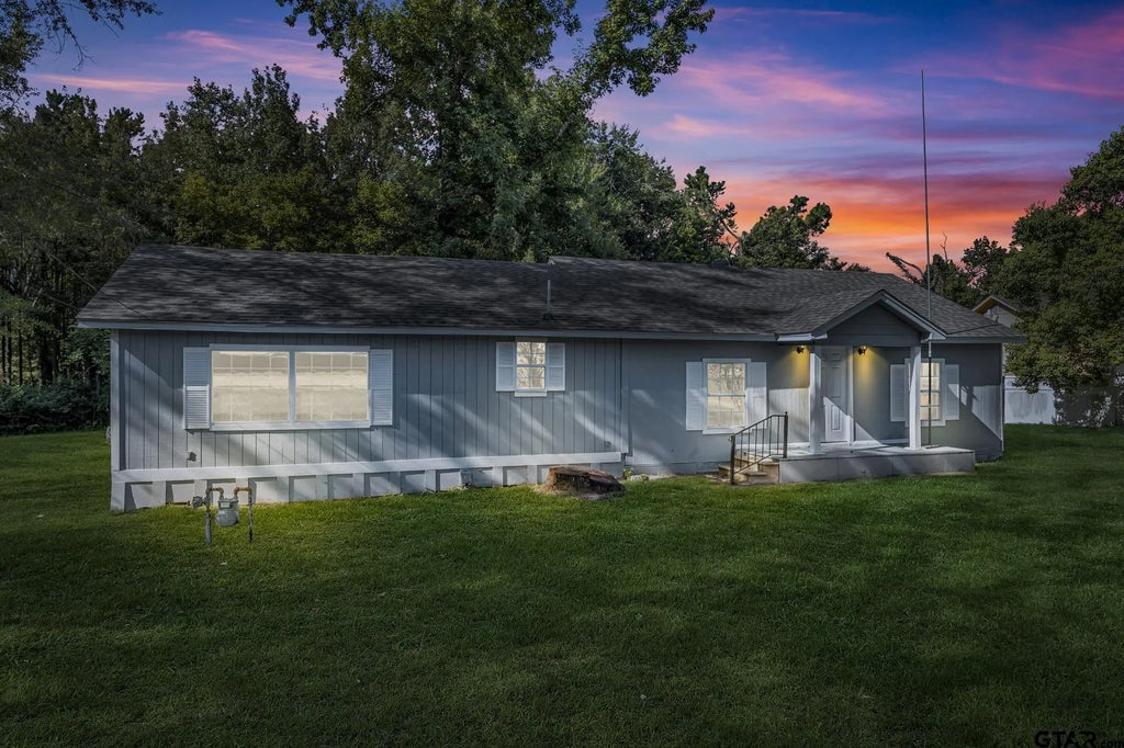 Tucked away on a serene 0.428-acre lot and surrounded by peaceful, wooded land, this updated East Texas gem offers all the charm of country living with the conveniences of town just minutes away. Located right across from the local fire department, this home sits in a community known for its friendly folks, Friday night lights, and easy access to both Tyler and Lake Tyler recreation. Step inside this inviting 2-bedroom, 2-bath farmhouse-style home and be greeted by fresh updates throughout. A new roof, new HVAC system with new ductwork, and updated electrical and plumbing mean you can move in with peace of mind. The open-concept floor plan is full of light and warmth, thanks to new laminate flooring, modern light fixtures, and a fresh coat of paint inside and out. The heart of the home—the kitchen—features a high-end 5-burner gas range, new stainless steel dishwasher and sink, and updated tilework that adds a clean, modern touch. Both bathrooms have been renovated with updated tile, fixtures, and vanities. The spacious primary suite is a true retreat, complete with a tray ceiling, large walk-in closet, and a private entrance to a covered porch perfect for sipping sweet tea in the evenings. The ensuite bath includes a walk-in shower and updated vanity. The guest bedroom also offers a roomy walk-in closet and plenty of natural light. Out back, enjoy a vinyl privacy fence and chain link border that keeps things peaceful while backing up to the trees. There's even a detached workshop—ideal for woodworking, crafting, or just extra storage. You're just a short drive from Tyler’s shopping and dining, and close to Lake Tyler, making this the perfect blend of rural charm and modern convenience. Whether you’re looking for your first home, a weekend retreat, or simply a quieter pace of life, this property delivers that sweet East Texas blend of comfort, character, and calm.