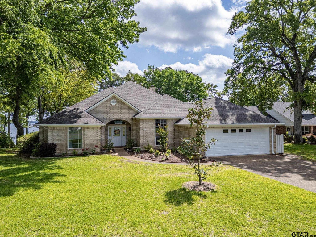 LAKEFRONT classic on Lake Palestine. Discover your dream home on the shores of a beautiful, deep water East Texas lake! This elegant and spacious 3-bedroom, 2-bathroom residence offers just under 3,000 sq ft of heated and cooled living space, perfectly blending comfort and lakefront luxury. The kitchen and breakfast area with open lighting and tons of storage over looks the beautiful green, back yard and lake. The primary room allows beautiful natural lighting and provides a large walk in shower and Jacuzzi, large bathtub. Wake up to breathtaking sunrises and wind down with the calming evening breeze from your screened-in back porch—your personal sanctuary for year-round relaxation. This lovely home features a wood-burning fireplace that willl keep you cozy on cool nights, and large windows throughout the house flood the interior with natural light, offering stunning lake views from multiple rooms. A super added value to this home is a basement that can be used for a game room, extra overflow sleeping arrangements, storage or just a really nice heated and cooled place for a he/she shed. The furnace, both water heaters and the water softener are stored in a separate room behind the game room.Enjoy peace of mind with thoughtful upgrades, including a NEW Class 4 Impact Resistance Shingles. With a 10 year transferable warranty. 20kW Generac generator capable of powering the home for up to three days, two water heaters, and a full water filtration system. The home draws water from the lake for lawn irrigation, helping you maintain lush green grass with ease. Septic maintenance is handled yearly by trusted professionals at Joey Ridgle Septic.With approximately 91 feet of prime lake frontage, this property is a rare gem. As an added .With some of the best fishing in East Texas and a single slip to store your boat don’t miss this rare opportunity to own a piece of paradise on one of East Texas’ most coveted lakes! Buyer to satisfy sq footage.