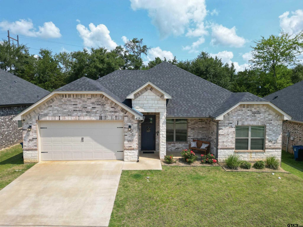 This beautiful 3-bedroom, 2-bathroom home offers a spacious 1,450 sq ft open-concept layout, perfect for both everyday living and entertaining. Built in 2021, it features modern finishes and thoughtful design throughout. The heart of the home is the oversized kitchen bar — providing ample counter space for meal prep, serving, or gathering with friends and family. The open living and dining areas create a seamless flow and inviting atmosphere. Step outside to enjoy a generous backyard complete with a playset, offering plenty of room for kids and pets to play. The covered back patio is ideal for relaxing in the shade, enjoying a morning coffee, or hosting weekend BBQs. The garage is a standout feature — equipped with a mini split air unit, it’s the perfect flex space for a home gym, office, workshop, or additional entertainment area. Located in a quiet, family-friendly neighborhood, Kingdom Estates offers excellent community amenities including a playground, basketball court, pavilion, dog park, walking trail and pickleball court — all just a short walk away. Don’t miss your chance to own this move-in ready home in one of Lindale’s most sought-after subdivisions!