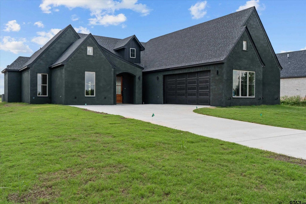 Looking for the perfect mix of countryside charm and modern convenience? This brand-new Tudor-inspired home has it all. Sitting on half an acre in one of the area’s newest communities, you’ll enjoy peaceful county living while still being just minutes from I-20, schools, shops, and restaurants. Inside, 2,026 square feet of thoughtfully designed space welcomes you in. The open floor plan highlights tall vaulted ceilings, warm wood accents, and a striking fireplace that anchors the living room. The kitchen is both beautiful and functional with custom cabinetry, quartz countertops, and a hidden walk-in pantry you have to see in person. The primary suite feels like a retreat with bamboo tile details, a soaking tub, and a walk-in shower. Three additional bedrooms and a second full bath keep the layout flexible for family, guests, or even a home office. Step outside to the extended back porch, the perfect spot for slow mornings or evenings spent with friends. Homes can be beautiful but not always practical. This one gives you both — smart design that works for everyday life, style that truly stands out, and a location in award-winning Lindale ISD that makes daily life easier. You can scroll through dozens of listings, but the truth is most of them do not feel like this.