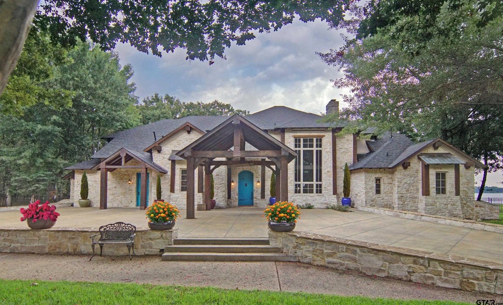 A lifestyle of casual elegance defines this stunning custom lakefront estate inside the prestigious Links at Land’s End on world-famous Lake Fork. Quietly tucked away with its own private entrance, this one-of-a-kind property offers a serene sanctuary surrounded by beautifully landscaped grounds, majestic oak trees, and abundant wildlife. The home’s dramatic great room is the heart of the residence, boasting a soaring 20-foot ceiling, massive wood-burning fireplace, and floor-to-ceiling windows framed by 16" white oak and red oak timbers shipped from Washington State. From here, breathtaking panoramic views of the lake, the multi-tiered deck, and the property’s 1,150 feet of shoreline unfold in every direction. The gourmet kitchen is a chef’s dream, designed to accommodate entertaining on any scale with high-end appliances, granite counters, custom cabinetry, and walk-in pantry. Your guests will find comfort in three private ensuites; each designed for relaxation and privacy. Outdoor living is equally exceptional, with a multi-level deck highlighted by a stone-bordered pond…a gas fire pit, and endless views of Lake Fork. The short pier and private boat launch give direct lake access for fishing, boating, and sunset watching….part of everyday life. Two oversized garages…one provides room for vehicles, equipment, and golf carts…the second garage boasts two drive-through bays leading directly to the launch. Additional features include a whole-house water filtration system, surround sound, large safe, and smart design for effortless living. As Members of The Links at Land’s End…residents also enjoy access to one of the top-ranked golf courses in the country, a community pool, clubhouse, and on-site dining at Jackie’s Pub. Built for both grand entertaining and private escapes, this custom home offers a rare combination of craftsmanship, natural beauty, and resort-style amenities. If you’ve been searching for the perfect Lake Fork lifestyle, you’ll find nothing better!
