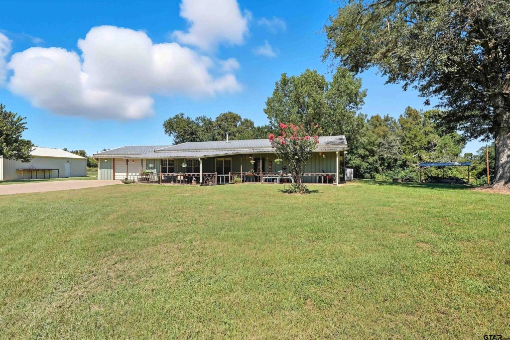 Discover your personal, private oasis on 6.251 pristine acres just outside of Winnsboro, TX. This gated ranchette combines country elegance with modern comforts. With 2,400 sq. ft. of living space and 9-foot ceilings, this open concept barndominium with 30x40 workshop checks all the boxes. Upon entering the home from the spacious covered front patio, a charming wood-burning stove and open floor plan provide all the space for family gatherings or quiet evenings with friends. Three sizeable bedrooms are one highlight of the thoughtfully designed split bedroom floor plus a versatile bonus room and a convenient mudroom directly off the garage and laundry room ensuring functionality and style. The primary suite is a sanctuary in itself, with the generous master bedroom and bathroom which features a marble vanity, a beautiful glass-and-marble shower, a clawfoot tub for spa-like relaxation, and double walk-in closets. Outdoors, the property is equally impressive. The sweeping views from the covered front porch look out onto the serene pastoral setting shaded by fig trees and crepe myrtles while the covered back porch offers a view of the wooded area and abundant wildlife. The tranquil pond is a great place for fishing and offers an an RV hook-up for guests. The workshop includes 10-ft drive-thru doors and 220 electric making it ideal for projects and hobbies. Additional highlights include an adorable chicken coop (complete with hens!) and the freedom of being outside the city limits. Winnsboro is located about 2 hours from Dallas and just a short drive from several popular lakes and camp grounds. Within minutes of your new home, you can also enjoy the lively downtown area of Winnsboro - a Main Street City which boasts the Farmers Market, great dining, and a full schedule of activities. Whether you’re seeking a private country escape, a hobby farm, or simply a serene lifestyle with every modern convenience, this country paradise delivers the best of both worlds.