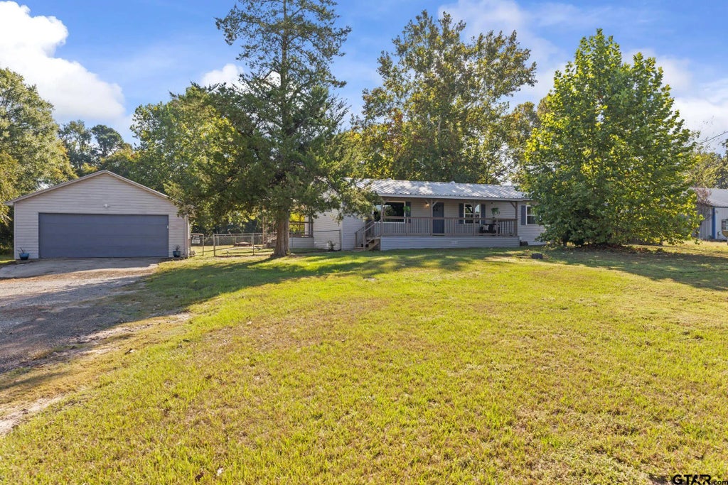 This immaculate ranch home is move in ready, offers 3 bedrooms, 2 full bathrooms, and has a completely renovated interior with tasteful updates throughout. Kitchen has new cabinets, with quartz countertops and stainless-steel appliances. The kitchen sink has a waterfall and glass cleaning feature. The Master bedroom suite includes a huge walk-in closet and a stunning master bathroom. Located on 1.15 Acres and has fruit trees. There is a large, covered front and back porch deck. Has a two-car detached garage. Back yard is partially fenced in. This, semi-rural area gives space, privacy, and beautiful scenic views. Great Country living located only 10 Minutes to downtown Lindale and 21 minutes to Tyler. Enjoy recreational activities at Tyler State Park only a 10-minute drive.