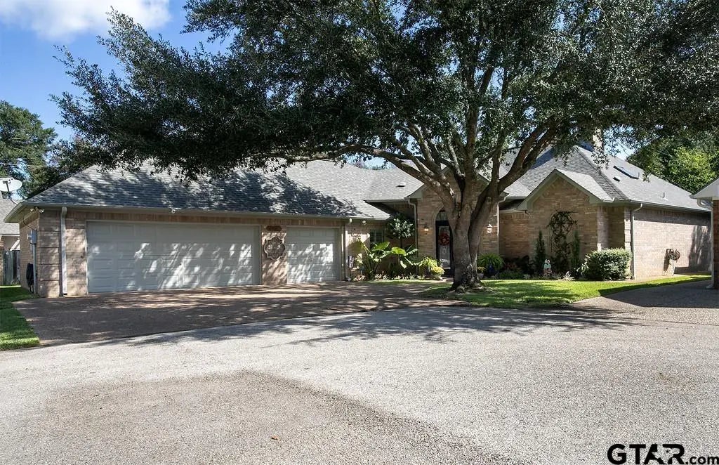 Welcome to 104 Glen Ridge Lane, a thoughtfully designed home in the exclusive **gated golf community** of Emerald Bay, just 12 miles south of Tyler on Lake Palestine. Tucked away on a quiet cul-de-sac this home combines refined details with everyday comfort. Inside soaring vaulted ceilings and walls of windows create an airy, open floor plan. Scraped hardwood floors, marble fireplace, custom built-ins, motorized shades and plantation shutters are a few of the quality features in the living room which flows into a dining space with a tray ceiling and designer lighting. A bright garden room extends to a 47 ft deck with clear views of Glen Ridge Park, perfect for morning coffee or evenings in the hot tub. The gourmet kitchen is equipped with upgraded KitchenAid appliances, a built refrigerator, under-counter ice maker, custom pull-out cabinetry, and abundant natural light from a skylight. The primary suite offers motorized shades, a spa-like bath with marble vanities, walk in shower with dual heads, skylight, and a spacious closet with custom built-ins. Two additional bedrooms feature private bathrooms and share a shower in a Jack-and Jill arrangement. A guest half-bath off the living room area completes the layout. Practical touches abound: central vacuum system, updated dishwasher and disposal (2024), and a utility room with sink, storage and natural light. Emerald Bay residents enjoy golf, lake access, community pool and resort-style amenities, all in a secure, welcoming community.