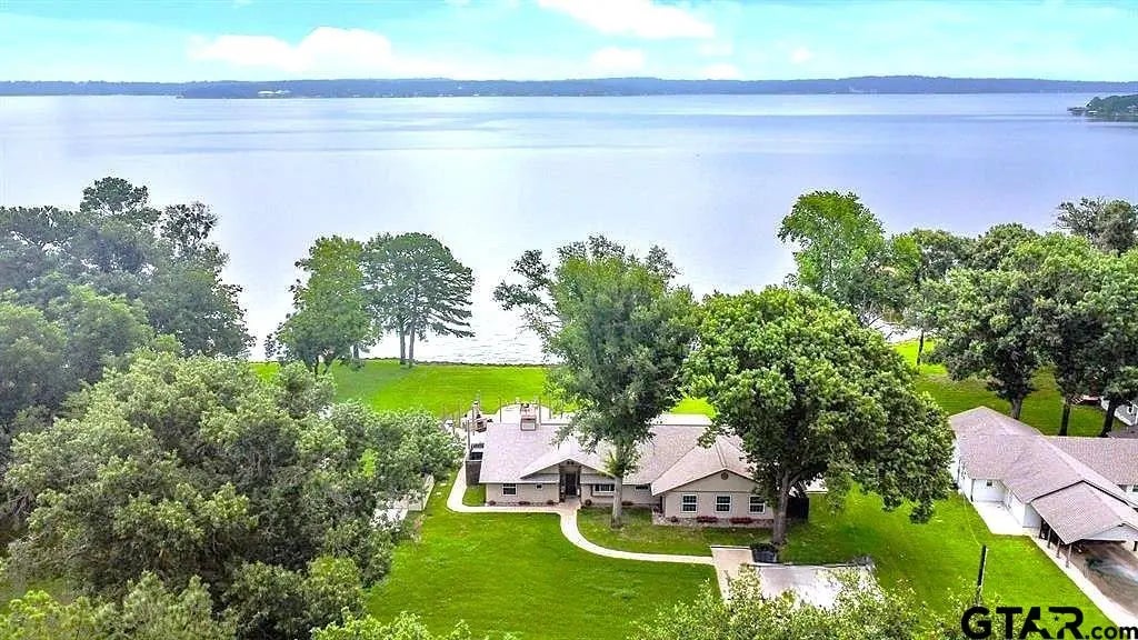 Welcome to your dream lakefront luxury retreat on Lake Palestine. This stunning property blends modern comfort with East Texas charm- perfect for a resort style destination for extended family, Airbnb property, church retreats, business meetings-getaways, for entertaining all sizes of groups. The kitchen is a chef's dream including TWO Viking 6-burner induction cooktops, KitchenAid stainless steel appliances including a wine fridge, a two-drawer pull-out refrigerator in the oversized island, two dishwashers, two convection ovens, warming drawer, and two built-in microwaves with convection cooking capabilities while walking like a King on brick herringbone flooring. The open floor plan connects the kitchen and living area seamlessly all with breath taking lake views and electric shades. Storage is not lacking in this home. The kitchen can hold every appliance you could ask for, and the pantry is practically a small grocery store. The main primary suite has a panoramic view of the lake with seating area and exquisite ensuite bathroom. Two bedrooms share an oversized bathroom, and one includes 4 built in bunkbeds for all the kiddos and their friends. Another bedroom with ensuite bath makes this ideal for multi-generational families. Outdoors, indulge in the East Texas sunsets from the expansive covered patio or sit under the stars at the uncovered patio with firepit and built-in pizza oven or at the open seating area of the boat dock. 2 stall covered boat house with lift is also included. This property also boasts a 40x14 storage building or workshop and an additional 32x12 storage building. Every detail of this home has been designed for comfort, convivence, and luxury- spacious bedrooms, elegant bathrooms, and high-end finishes throughout. Whether it's your full-time residence, weekend-Summer escape, or income producing property, this property delivers the lakefront lifestyle you have been dreaming of. Life is better at the lake!