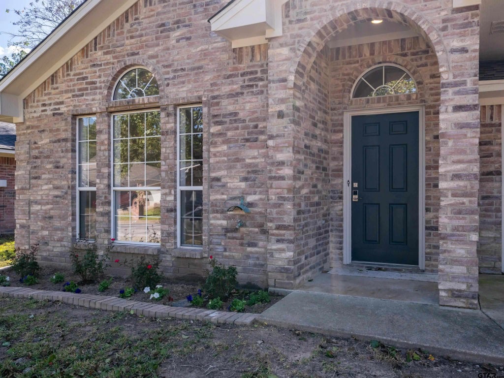 Welcome to 541 Frederick Drive, a beautifully updated home located between Tyler and Flint, Texas, in a quiet, rural subdivision. This move-in ready residence blends modern updates with timeless charm, offering a comfortable and functional layout perfect for families, entertaining, or home office use. Inside, the living room features an accent-wall entry, a classic brick fireplace ready for winter warmth, and a large bay window that fills the room with natural light. New carpet adds comfort, while the adjacent dining area offers space for a full table and additional furniture. The kitchen is a standout with gray-painted cabinetry, an Italian tile backsplash, farmhouse sink, brass hardware, and classic granite countertops. A bar area comfortably seats 3–4 people, and brand-new stainless steel appliances complete the space. The primary suite features an accent wall and French doors to the backyard, while the master bath boasts Italian tile from floor to ceiling, a new vanity, and champagne-gold hardware. The guest bath includes all-white tile, a tub/shower combo, and a wide vanity with matching hardware. Two secondary bedrooms offer spacious closets with built-in shelving and bright windows. Additional updates include a brand-new AC system, new gray shingle roof, updated lighting, and a fenced yard with a storage shed. This home offers comfort, style, and thoughtful design in a serene location between Tyler and Flint.