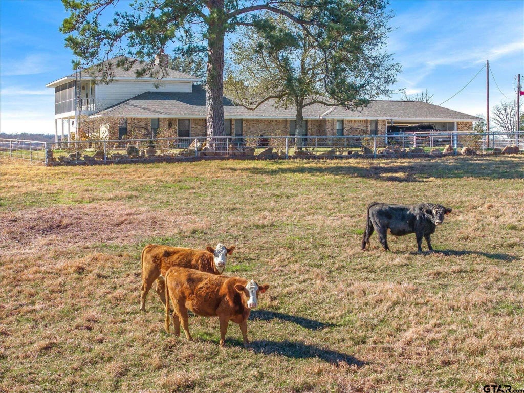 Meticulously maintained 100± acres positioned at the mouth of the Neches River, offering exceptional waterfront frontage on the highly coveted Rhines Lake in East Texas. This remarkable property features its own private boat ramp, fishing pier, and lakeside cabana, creating an unmatched setting for recreation and relaxation. Approximately 50 acres are under a Valley Pivot Water Circle System, producing rich, productive grasses ideal for ranching or hay production. The land is well-improved with clean perimeter fencing and cross-fencing, three ponds, and extensive ranch infrastructure including corrals, chutes, a chicken coop, multiple shops and barns, a greenhouse, and raised garden beds with an integrated watering system. A whole-property generator ensures reliability and peace of mind. The ranch-style home offers inviting living spaces highlighted by exposed beams, a wood-burning fireplace, and a family room with panoramic views of the land and lake. The home includes a primary suite with ensuite bath, fireplace, and private walk-out to a screened porch and balcony overlooking the lake. A second primary bedroom with ensuite bath is located downstairs and is handicap accessible, along with an additional downstairs bedroom and bathroom. Whether your vision includes homesteading, ranching, hunting, fishing, or simply enjoying the serenity of lakefront living, this exceptional property offers an extraordinary combination of land, water, and improvements—truly too many amenities to list.