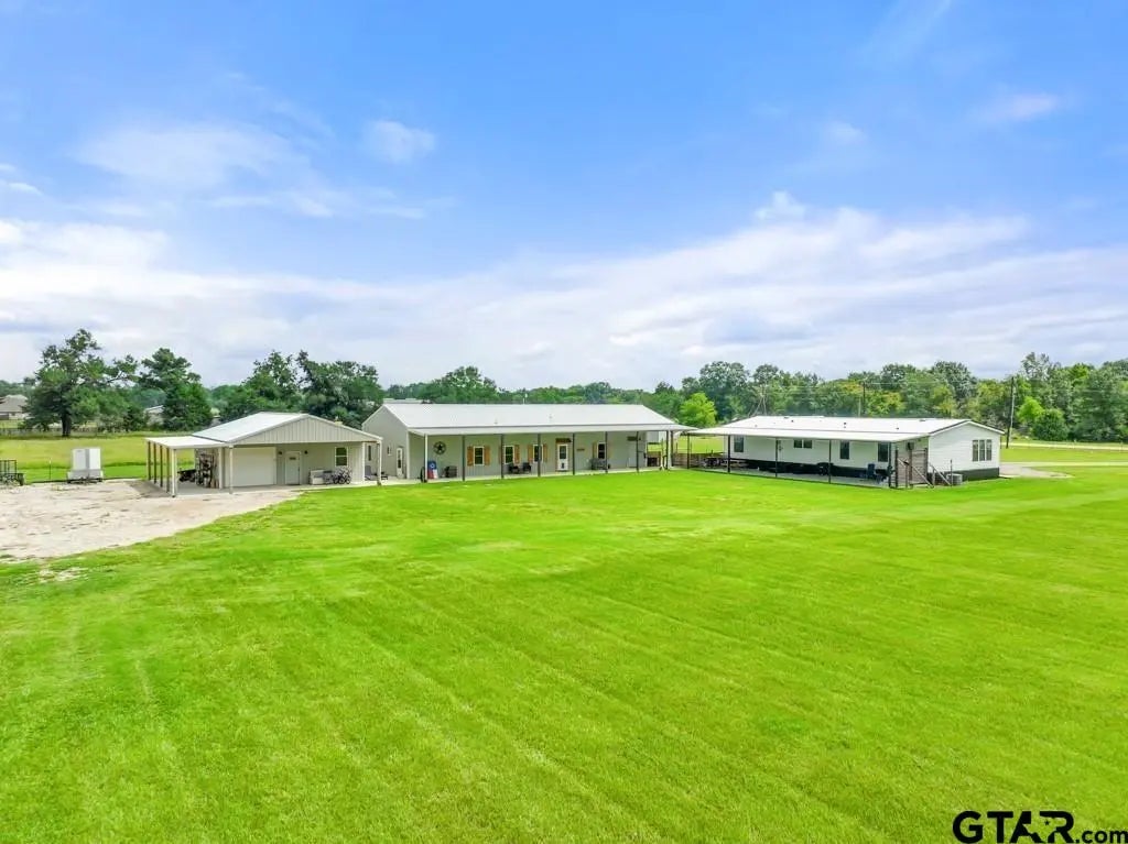 This pristine property is easily made multi-generational; build another house; fenced & cross-fenced; raise cattle; add a horse barn & arena! The 3-2 open-concept Farmhouse Style Home, plus an 1,860 sq ft Barndo with a kitchenette, 1 bedroom, a full bath, and 2 hobby rooms (convert to bedrooms by adding a closet) total 3,240 sq ft of living space, plus an oversized 3-car garage, and a shop! A better maintained and immaculate home than this one will be very difficult to find! In the split Primary bedroom with an en suite bathroom with Double vanity and sink, a soaker tub, separate shower an huge walk-in closet, There are 2 guest rooms, and a 2nd full bath. Heated toilet seats in both bathrooms offer a touch of luxury. The spacious living room, featuring an enclosed electric fireplace, seamlessly integrates the living room, kitchen, and dining room, creating an ideal space for large family gatherings. The heart of this home is the huge kitchen, with an expansive island perfect for meal preparation and casual dining. With ample counter space, metal pull-out cabinet inserts, modern appliances, and plenty of storage, this kitchen is a joy! The exceptionally large pantry ensures you have everything you need at your fingertips and leads into the cheerfully bright laundry room. Outdoor living is a highlight of this property. An 8' X 62' concrete sidewalk with a front-door overhang leads to a 62' X 14' tiled covered patio, complete with overhead fans and a misting system, making it the perfect spot to relax and watch the sunset. All exterior doors are equipped with keypads for added convenience. There are two homestead acres, one has buildings, the other is already metered. Build another home, and have three different living spaces. Use the barndo for an Airbnb, after all it is very close to Lake Fork. There are no restrictions and the AG Exempt with hay makes for low property taxes! All offers will be considered. Ask your agent to set up a showing.